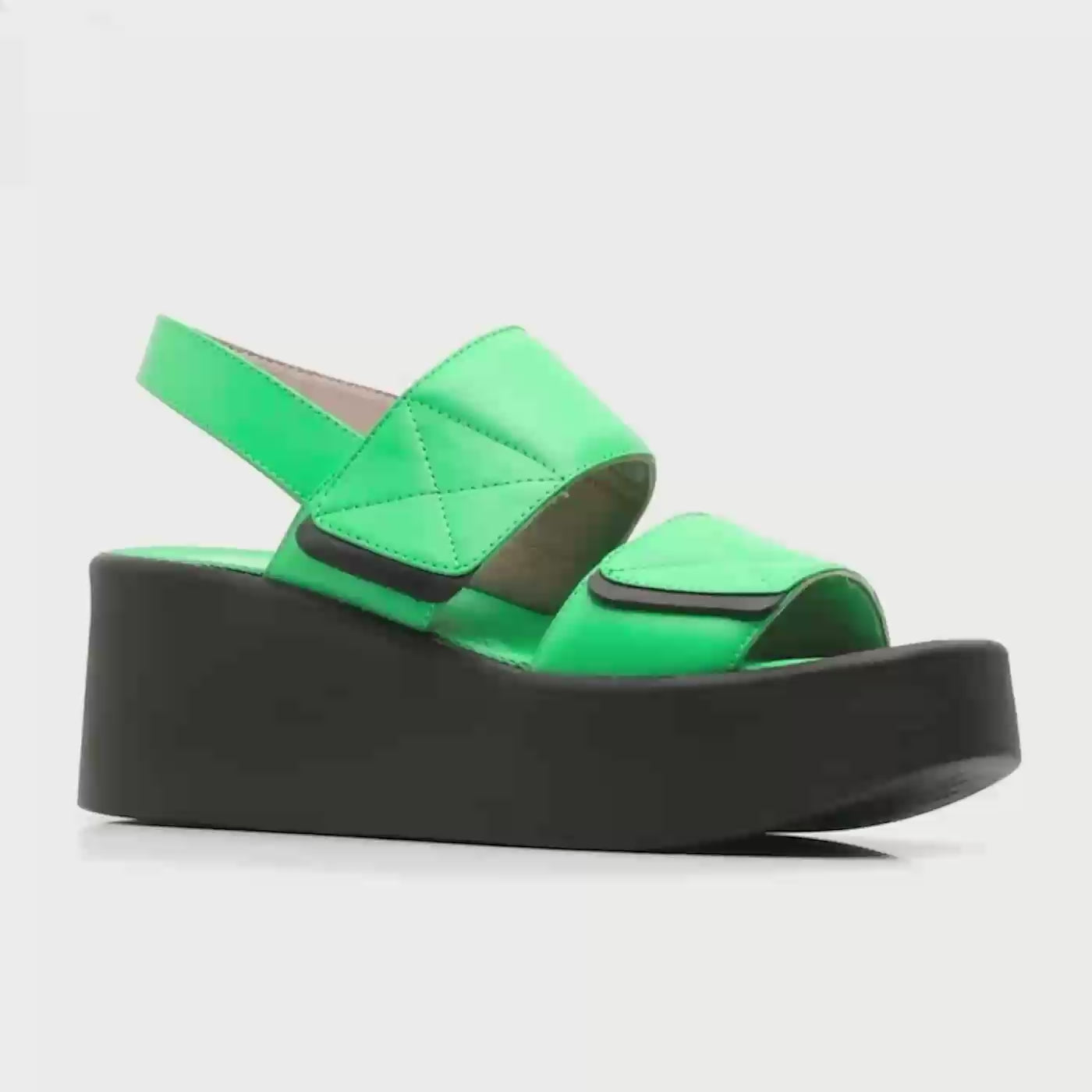 The BARHION Women's Calf Leather Handmade Sandals boast an eye-catching green hue and a contemporary, chunky design, making them an ideal choice for those seeking a fashion-forward appearance.