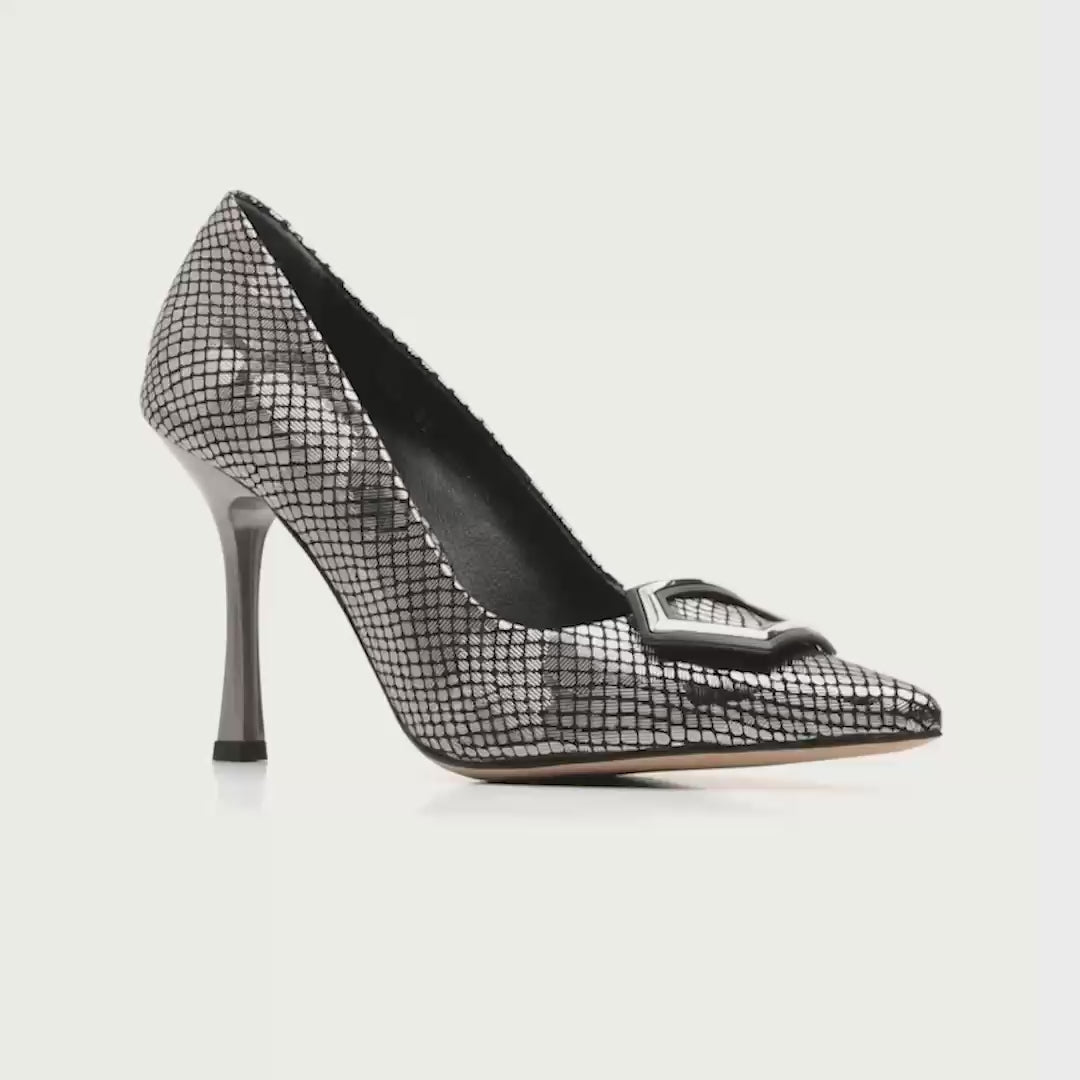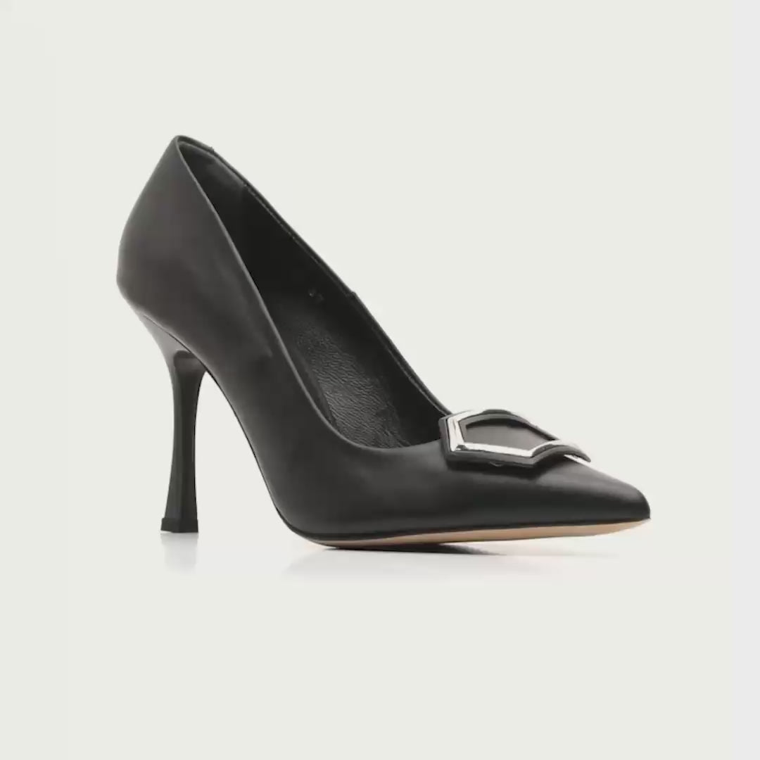 Accessory: A striking buckle accent provides a focal point, adding a dash of modernity to the classic stiletto silhouette.