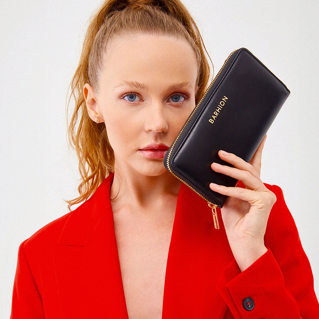 Women's Calf Leather Crocodile Embossed Handmade Wallet W25026